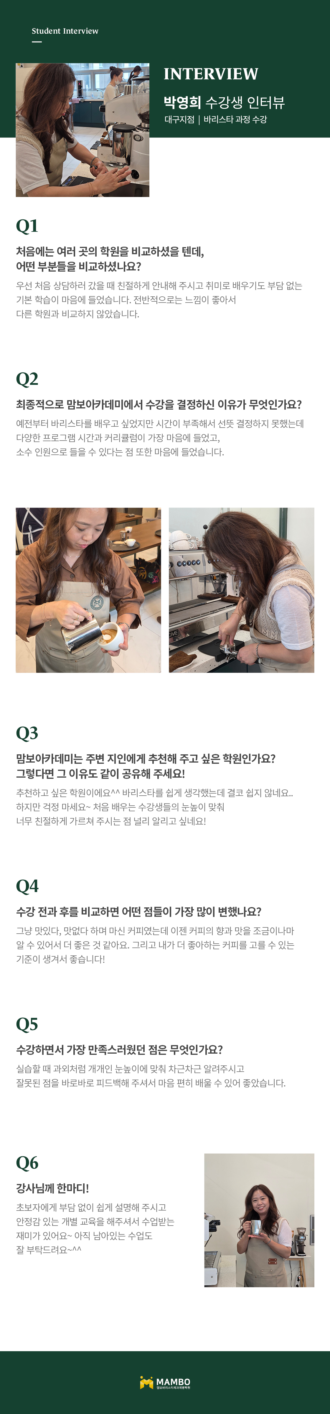 맘보학원과 함께 한 수강생들과 협약업체 실무자들의 인터뷰 입니다.