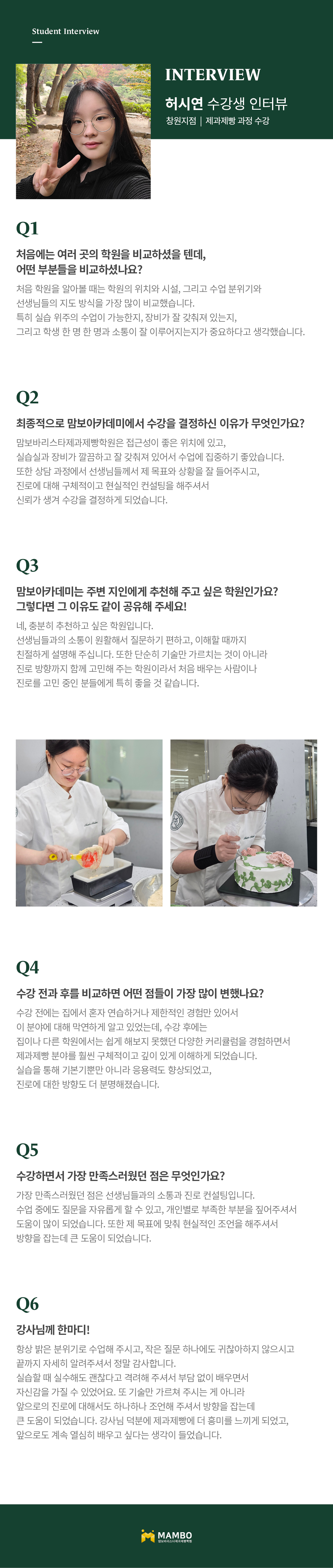 교육의 기반을 달리하여 학생의 기회를 잡아주며 직원의 기강이 태만하지 않은 맘보바리스타제과제빵학원